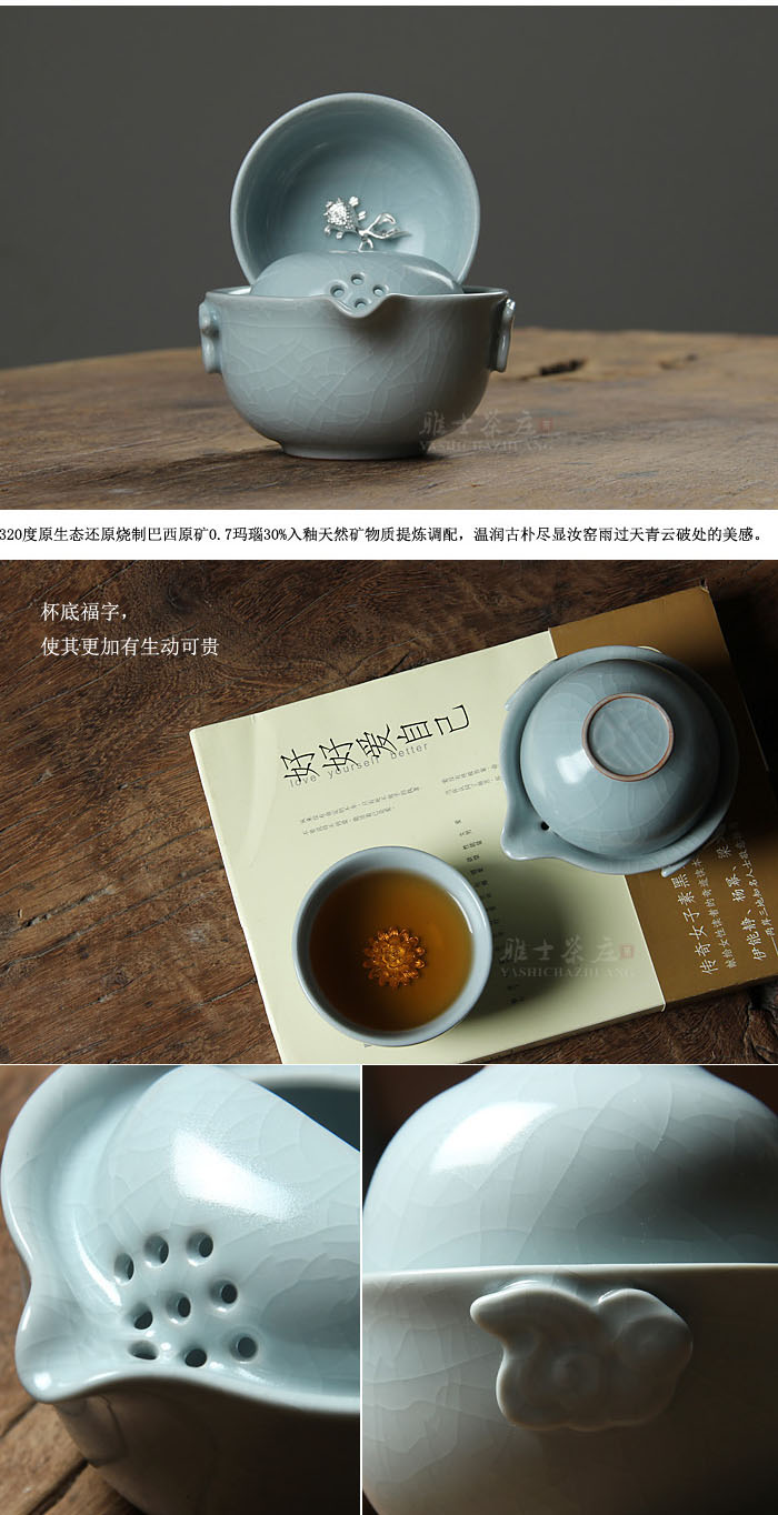 5Cgo【代購七天交貨】536700780480 汝窯開片快客杯普洱茶具茶壺茶杯泡茶手抓壺鑲銀飾茶杯便攜旅行辦公一壺一杯